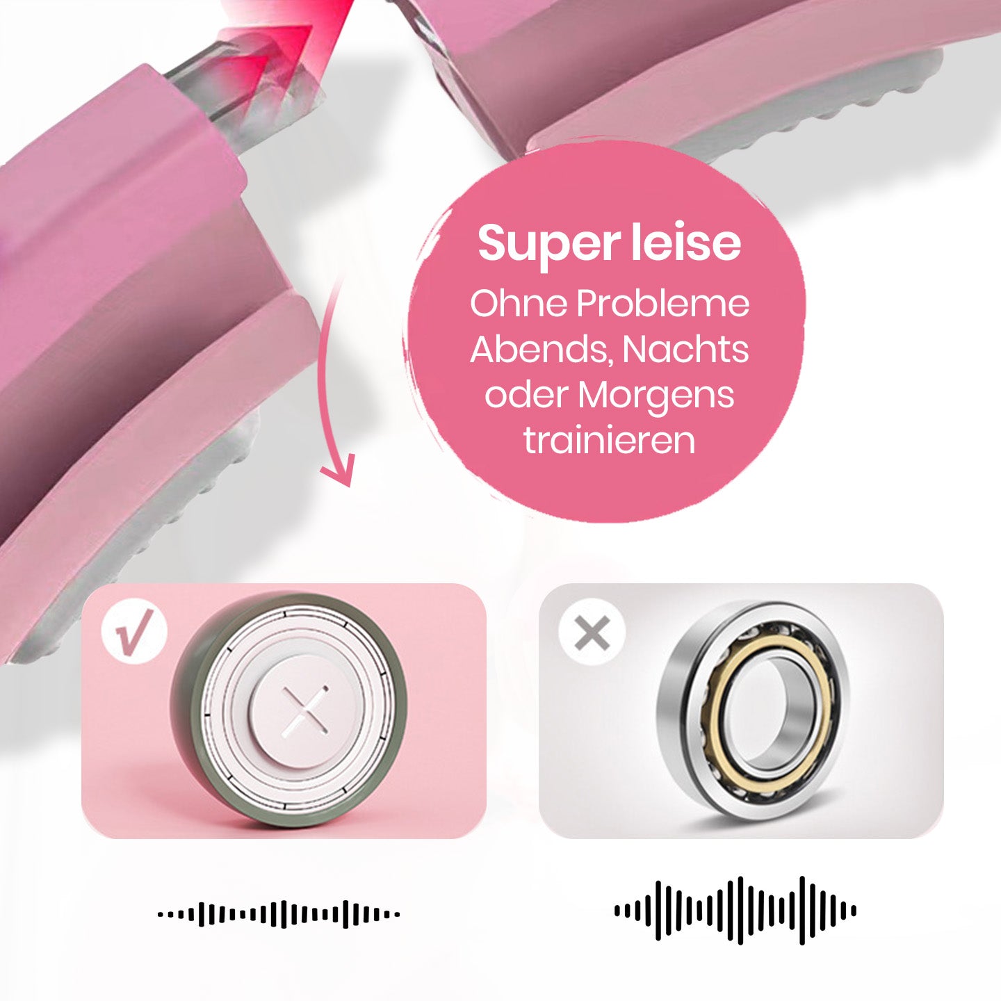 - 90% más silencioso que otros aros de hula inteligentes